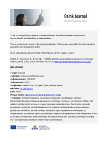 Oamk journal : 141 (Oulun ammattikorkeakoulu, 2025)Artikkelissa tarkastellaan mielen hyvinvointia edistävää työkykyjohtamista ja siihen liittyviä toimia organisaation eri tasolla. Mielen hyvinvointi ilmenee tasapainoisuutena, tyytyväisyytenä ja merkityksellisyyden tunteena. ... -