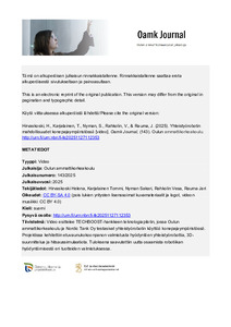 Oamk journal (Oulun ammattikorkeakoulu, 2025)Video esittelee TECHBOOST-hankkeen pilottiprojektin, jossa Oulun ammattikorkeakoulu ja Aikolon Oy kehittivät läpinäkyvien muovien tuotantoprosesseja laser- ja infrapunateknologioiden avulla. Projektissa hyödynnettiin ... -