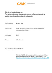 Opinto-ohjaaja : 3 (Suomen Opinto-ohjaajat ry, 2025)Oulun ammattikorkeakoulun opettajankoulutusyksikön opinto-ohjaajankoulutuksessa toteutettiin tulevaisuustyöpaja Pohjois-Pohjanmaan ja Kainuun alueen opinto-ohjaajille. Työpajan tarkoitus oli koota alueen opinto-ohjaajilta ... -