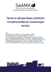 Centria. Tutkimuksia : 10 (Centria-ammattikorkeakoulu, 2022)Opiskelijoiden yrittäjyysaikomuksia on tutkittu useista eri näkökulmista, mutta perheyritystausta itsessään ei ole saanut kovin paljon huomiota. Tämän tutkimuksen tavoitteena on vertailla perheyritystaustaisten opiskelijoiden ...