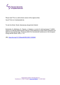 Impact of 15-Minutes Measurement Interval in Smart Metering on Peak Power Estimation and Network Capacity Planning