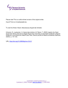 Insights into Good Supervisor Work produced by Digital Supervisor Coaching as described by Master’s Degree Students in the Social and Health Care Field