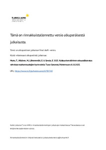 Turun ammattikorkeakoulun raportteja : 312 (Turun ammattikorkeakoulu, 2025)The Arts on Prescription (AoP) in the Baltic Sea Region project was carried out as a collaboration between 13 European partner organisations from 2023 to 2025. The project aimed to develop, pilot and evaluate Arts on ... -