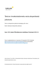 Fysioterapia : 3 (Suomen fysioterapeutit - Finlands fysioterapeuter ry, 2025)Sana diagnoosi herättää paitsi vahvoja mielikuvia myös vahvoja tunteita. Ei ole yllättävää, että fysioterapeuttinen diagnoosi on hakenut muotoaan yli neljän vuosikymmenen ajan. Määrittelyn vaikeus kuvastaa alamme paradigman ... -
