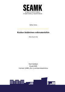 (2026)Opinnäytetyön toimeksiantajana on Atria Suomi Oy. Opinnäytetyön tavoitteena oli löytää keinoja lisätä kuitua mikroaterioihin. Sitä tutkittiin arvioimalla, miten kuidun lisääminen vaikuttaa tuotteen laatuun ja aistinvaraisiin ... -