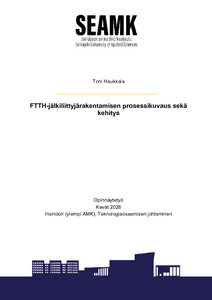 (2026)Opinnäytetyön aiheena oli kuvata FTTH jälkiliittyjärakentamisen prosessi ja tutkia, miten sitä voisi kehittää kustannustehokkaammaksi. Työ keskittyy projektipäällikön näkökulmaan. Työssä valmistettiin yksityiskohtainen ... -