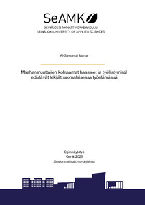 (2026)Tämän opinnäytetyön tarkoituksena oli selvittää maahanmuuttajien kohtaamia haasteita työelämässä. Tutkimus keskittyi erityisesti kielitaitoon, verkostojen puutteeseen, koulutuksen tunnistamiseen sekä syrjintään. Aihe on ... -