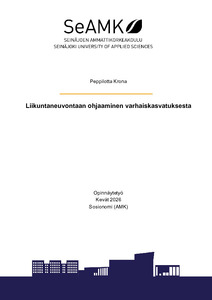 (2026)Tämän opinnäytetyön tarkoituksena oli tutkia Liikuntaneuvontaan ohjaus varhaiskasvatuksesta -hankkeen vaikutuksia Seinäjoen kaupungin varhaiskasvatuksessa. Opinnäytetyö toteutettiin yhteistyössä Seinäjoen kaupungin ... -