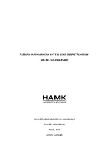 Tämän kirjallisuuskatsauksen tarkoituksena oli löytää tietoa astmaa ja ahtauttavaa uniapneaa mahdollisesti yhdistävistä tekijöistä, ja selvittää liittyvätkö ne toisiinsa jollakin tavalla. Tarkoituksena on myös selvittää miten näitä sairauksia voidaan ennaltaehkäistä. Katsauksen toimeksiantajana oli Hämeen ammattikorkeakoulu.
