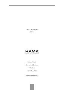 The thesis went on to identify the decision processes of international students, the reasons why they choose to study in Finland and how they came to make that decision. The Thesis concludes by making suggestions and recommendations for HAMK Valkeakoski to carry out in order to succeed in integrating its international students