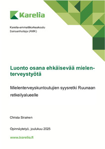 (2025)Mielenterveyden haasteet ovat lisääntyneet kaiken ikäisten keskuudessa viime vuosien aikana. Erityisesti ehkäisevän mielenterveystyön merkitys on korostunut osana sosiaali- ja terveydenhuoltoa. On tutkittu, että psyykkistä ... -