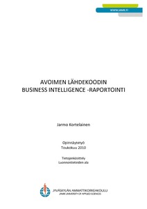 Opinnäytetyön toimeksiantaja Intellica Solutions Oy on jyväskyläläinen business inteligence -ratkaisujen toimittamiseen erikoistunut yritys. Intellica Solutions on käyttänyt ratkaisuissaan yksinomaan kaupallisia tuotteita. Tutkimuksen tarkoituksena oli selvittää, kuinka hyvin avoimen lähdekoodin business intelligence -raportointivälineet vastaavat ominaisuuksiltaan ja teknologisilta ratkaisuiltaan kaupallisia business intelligence -tuotteita.