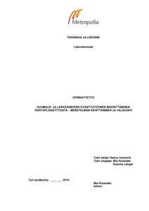 Opinnäytetyö tehtiin Terveyden ja hyvinvoinnin laitoksen Päihdeanalytiikan yksikössä. Työn tavoitteena oli kehittää uusi menetelmä huumaus- ja lääkeaineiden kvantitatiivista määritystä varten veritäplänäytteistä. Kehitetylle menetelmälle suoritettiin täysvalidointi.