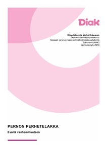 Opinnäytetyö on kehittämispainotteinen ja sen päätavoite oli tuottaa Turun kaupungin Pernon perhetelakalle esite sen toiminnasta. Opinnäytetyön yhtenä osuutena oli Pernon perhetelakalla järjestetty avointen ovien tapahtumailta. Työ sisältää teemahaastattelun, joka on tutkimuksellinen osa opinnäytetyötä. Haastattelu toteutettiin Pernon perhetelakan työntekijöille. Opinnäytetyö tehtiin yhteistyössä perhetelakan työntekijöiden kanssa. Esite valmistui syksyllä 2018.