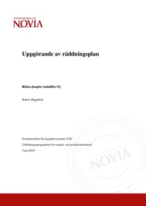 Tämä opinnäytetyö on tehty toimeksiantona Rinta-Joupin Autoliike Oy:lle. Rinta-Jouppi toimii suurena vaikuttajana Suomen autoteollisuudessa. Liiketoimintaan kuuluu automyynti ja autohuolto. Liike sijaitsee Vaasassa, jossa työntekijöitä on noin 60. Turvallisuus on tärkeä aihe kaikilla toimialoilla, myös autoteollisuudessa, jossa vaarallisten aineiden käsittely on päivittäistä ja vaaratilanteita on monta. Tämän opinnäytetyön tarkoitus oli tehdä päivitetty pelastussuunnitelma, joka on enemmän räätälöity tälle toimialalle. Tavoitteena oli tehdä helppokäyttöinen pelastussuunnitelma, joka sisältää kaikki lain vaatimat osat ja tällä tavalla lisätä mielenkiintoa turvallisuutta kohtaan yrityksessä.