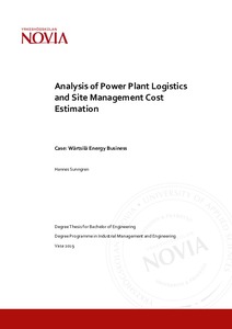Tämä Opinnäytetyö on tehty Wärtsilän Energy Business, Project Management Development & Toolsosastolle. Opinnäytetyön tavoitteena oli analysoida, kuinka tarkka Wärtsilä on ollut arvioidessaan Power Plant logistiikan ja työmaajohdon kustannuksia. Tarkoituksena oli ehdottaa parannuksia kustannusarvioprosessiin ja kustannusarviotyökaluun CRM:ssä.