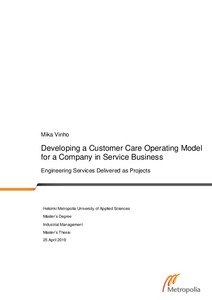 The thesis focuses on developing a customer care operating model for a company in service business with the focus of one service context; the engineering services delivered as projects. The purpose is to have better understanding on how the company should take care of its customers in general, and to build the basis for further development of defining the customer care processes in more detail. Any company that is in the service business and aims for increased growth needs to take care of their customers, therefore a systematic way of taking care of the customer that aims for increased positive word of mouth and loyalty is required.