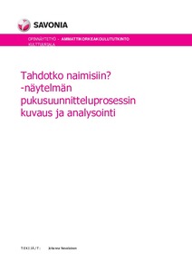 Opinnäytetyössä toteutetaan pukusuunnitelma toimeksiantajan, Vuokonjärven kesäteatteri Ry:n tuottamaan komedianäytelmään Tahdotko naimisiin? Näytelmä saa ensi-iltansa juhannusaattona 2019. Pukusuunnitelma käsittää asukokonaisuudet yhdeksälle roolihahmolle.