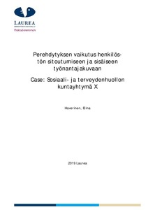 Opinnäytetyön tavoitteena oli tutkia perehdytyksen vaikutusta henkilöstön sitoutumiseen sekä sisäisen työnantajakuvan muodostumiseen, eräässä sosiaali- ja terveydenhuollon kuntayhtymässä. Tavoitteena oli myös selvittää perehdytyksen, sitoutumisen sekä sisäisen työnantajakuvan nykytasoa organisaatiossa. Tutkimuksesta saatuja tuloksia on tarkoitus voida hyödyntää organisaation toimintojen kehittämisessä, jotta ne tukisivat entistä paremmin laadukasta perehdytystä, henkilöstön sitoutumista sekä positiivista työnantajakuvaa.