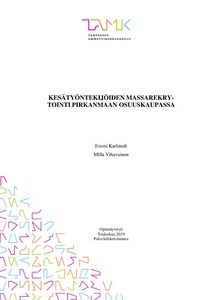 Opinnäytetyön tarkoituksena oli tutkia kesätyöntekijöiden massarekrytoinnin toimivuutta Pirkanmaan Osuuskaupassa. Opinnäytetyössä tutkittiin myös markkinoinnin vaikutusta hakijamääriin. Massarekrytoinnin toimivuutta on tutkittu Pirkanmaan Osuuskaupassa vuosina 2017 ja 2018. Tutkimusta jatkojalostettiin markkinointitutkimuksella, sekä jatkohaastattelulla. Työn toimeksiantajana on Pirkanmaan Osuuskauppa. Tutkimuksen avulla toimeksiantaja pystyy kehittämään yrityksen rekrytointia tulevaisuuden massarekrytointeja ajatellen. Työn tavoitteena oli kerätä palautetta massarekrytoinnin toimivuudesta koko hakuprosessin ajalta, sekä tapahtumasta kokonaisuudessaan. Tavoitteena oli myös tutkia markkinoinnin vaikutusta haastavan toimipaikan hakijamääriin.
