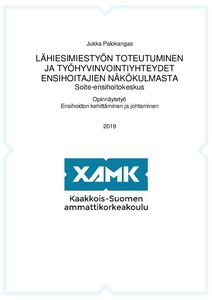 Tämän tutkimuksen tarkoituksena on selvittää, miten lähiesimiestyön eri toiminnot toteutuvat kenttäjohtajan toteuttamassa lähiesimiestyössä Soiten ensihoitokeskuksessa sekä mitä lähiesimiestyön toimintoja ensihoitajat pitävät tärkeinä ja millaisia työhyvinvointiyhteyksiä niillä on ensihoitajien näkökulmasta.