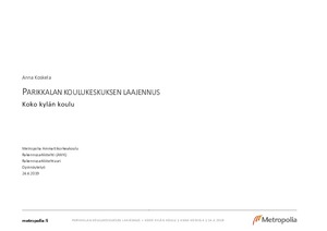 Opinnäytetyön suunnitelman kohteena on Parikkalan koulukeskus, joka on kolmen yhtenäisen rakennusosan kokonaisuus osoitteessa Kirjolankatu 5, 59100 Parikkala. Sisäilmaongelmista kärsivä ja purkutuomion alla oleva osa koulukeskuksesta ei ole tiloiltaan opetustarpeita vastaava eikä nykyistä opetussuunnitemaa tukeva. Kohde on ajankohtainen, sillä Parikkalan kunnalla on meneillään rakennushanke uuden korvaavan laajennuksen toteuttamisesta. Koulukeskuksen rakennushankkeen lähtötiedot, kuten laadittu tilaohjelma, ovat tämän opinnäytetyön suunnitelman pohjana, mutta muuten suunnitelma on itsenäinen ja todellisesta hankkeesta irrallinen tuotos.