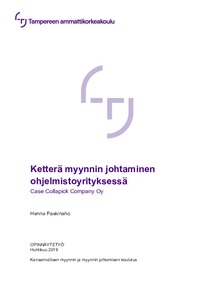Collapick Company Oy on Joensuussa ja Tampereella toimiva ohjelmistoyritys, joka auttaa yrityksiä digitalisoimaan liiketoimintaansa ihminen edellä. Yksi yrityksen merkittävä strateginen päämäärä on kannattavan kasvun saavuttaminen ja myynnin nähdään olevan tärkeässä roolissa sen saavuttamisessa. Työn tavoitteena oli kehittää myynnin johtamisen ja mittaamisen toimintamalleja kasvavan yrityksen tarpeisiin. Sen tarkoituksena oli selvittää, testata ja dokumentoida ketteriä myynnin johtamisen toimintamalleja Collapick Company Oy:lle.