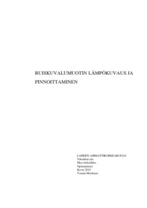 Tämän työn aiheena oli ruiskuvalukoneen muotin pinnoittaminen ja sen lämpö-kuvaaminen. Työn tarkoituksena oli löytää muotille optimaalinen pinnoite, jotta sitä pystyttäisiin kuvaamaan lämpökameralla paremmin ja tutkimaan lämpökuvien avulla muotin lämpötilajakaumia ruiskuvaluprosessin eri vaiheissa. Ruiskuvalumuotin lämpökuvaaminen ja kunnollisten lämpökuvien saaminen on ollut hankalaa varsinkin korkeissa lämpötiloissa, koska muotin metallipinta on kiiltävä. Muotin onnistuneen lämpökuvauksen avulla prosessista saataisiin arvokasta tietoa ja näin kehitettyä prosessia.