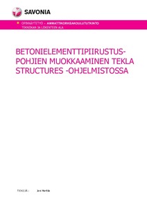 Tämän opinnäytetyön aihe perustui Rakennussuunittelutoimisto Turunen & Räisänen Ky:n tarpeeseen hyödyntää Tekla Structures -tietomallinnusohjelmistoa tarjousvaiheen betonielementtipiirustusten tuottamisessa. Tavoitteena oli tehdä piirustuspohjat sokkeli-, väliseinä- ja sandwichelementtejä varten sekä laatia tilaajalle yksityiskohtainen ohje piirustusasetusten tekemiseen.