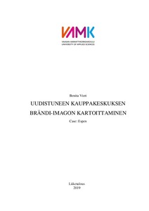 Tutkimuksen teoreettinen viitekehys koostuu brändiä ja brändin rakentamista sekä brändi-imagoa koskevista teorioista. Tutkimus rajattiin koskemaan asiakkaiden näkökulmaa Espenin brändistä. Tutkimus toteutettiin kvalitatiivisena tutkimuksena ja saatu aineisto kerättiin puolistrukturoiduilla haastatteluilla. Haastateltaviksi valikoitiin 10 kauppakeskus Espenin asiakasta.