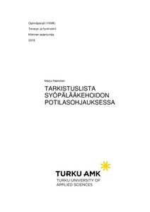 Abstract: Cancer drug therapies with antineoplastic agents are a key part of today's individually tailored cancer treatment process, which requires high quality patient education. To ensure this, standardized practices should be used. The checklist is one way to provide the patient education process systematically in the same way from time to another regardless who of the nurses performs the patient education. Patient safety can be increased by uniting patient education practices. The aim of the thesis was to further develop a systematic approach as part of the cancer drug therapy patient education quality assurance process. With evidence-based methods, the purpose was to strengthen the theoretical basis of the previously formed and piloted cancer drug therapy patient education checklist. The commissioner of the thesis was Pirkanmaa Hospital District.