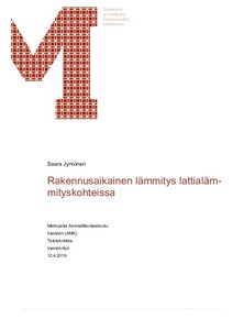 Tämä insinöörityö on tehty toimeksiantona Uponor Suomi Oy:lle, jonka tarkoituksena on tulevaisuudessa tehdä tämän työn pohjalta selkeä ohjeistus urakoitsijoille lattialämmityksen käyttöönotosta ja sen hyödyntämisestä jo rakennusaikana. Rakennusaikaista lämmitystä tarvitaan, jotta työmaalla saavutettaisiin vaaditut olosuhteet työskentelylle, tiloille sekä rakenteille. Koska lämpötilan nostaminen on yksi tehokkaimpia tapoja nopeuttaa rakenteiden kuivumisprosessia, liittyy rakennusaikaiseen lämmitykseen olennaisesti myös kuivaus.