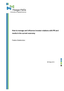 How to manage and influence investor relations with PR and media in the current economy