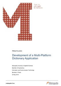 The result of the thesis was an application that succeeded in fulfilling most requirements. However, due to time restraints the application could not be developed far enough to fulfill all of them. Development of the application was continued after the completion of this thesis. Opinnäytetyön tavoitteena oli kehittää monialustainen sanakirjasovellus, joka toimii moderneissa älypuhelimissa, sekä verkkoselaimessa. Työn toimeksiantajana on NRC Group Finland Oy, joka on infrahankkeiden suunnittelutoimisto, rakennusliike ja kunnossapitoyritys.