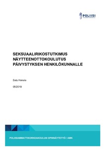 Tämä toiminnallinen opinnäytetyö käsittelee koulututtamista seksuaalirikostutkimuksen tekemiseen Kanta-Hämeen keskussairaalan Hämeenlinnan päivystyksessä. Opinnäytetyönä syntyi koulutusvideo seksuaalirikosnäytteenotosta. Koulutusvideossa käsitellään seksuaalirikostutkimus kokonaisuudessaan. Pääpaino koulutusvideossa on näytteenotossa.