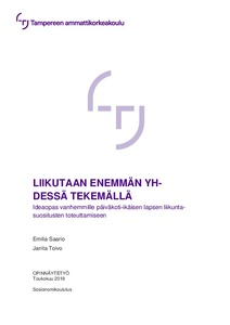 Opinnäytetyön tarkoituksena oli selvittää, miten lasten liikkumista voidaan edistää arjessa sekä miten vanhempien osallisuutta voitaisiin edistää entistä enemmän liikuntasuositusten toteuttamisessa eikä vastuuta jätettäisi niin paljon liikuntapäiväkodille. Opinnäytetyön keskeisiä käsitteitä olivat liikuntakasvatus ja vanhempien osallisuus.