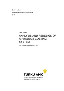 Tämän opinnäytetyön tavoitteena oli tuotekustannuslaskennan analyysi tapausyrityksessä ja ehdota parannuksia saavuttaakseen parempi korrelaation tuotekustannuksien todelliseen kustannuksien verrattuna. Tapausyritys ja tilaaja on keskisuuri tuotantoyrityksen, Suomessa toimiva Mirka Oy. Työssä tutkittiin toiminnanohjausjärjestelmässä olemassa oleva tuotekustannuslaskentamenetelmän, kustannuksien kohdentamismekanismi ja analysoi sen rajoitukset ja ongelmankohteet. Tutkimuksessa on käytetty kvantitatiivista dataa, kerätty pääasiallisesti toiminnanohjausjärjestelmästä.