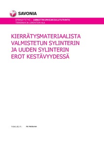 Opinnäytetyön tavoitteena oli valmistaa kierrätysmateriaalista valmistettua sylinteriä vastaava sylinteri uusista materiaaleista, laatia molemmille sylintereille yhteinen testaussuunnitelma, suorittaa testit ja laatia testiraportti, jossa erot kestävyydessä on esitelty.