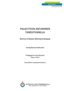 Pedagoginen opinnäytetyö lähestyy erään opettajan antaman palautteen vaikutusta oppilaisiin tanssitunnilla. Kolmena erilaisena menettelykeinona käytetään suullista, fyysistä (sisältäen konkreettisen näytön ja kosketuksen) sekä ei-palautteenantoa.