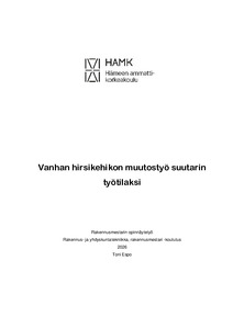 (2026)Tämän opinnäytetyön tavoitteena oli tehdä kustannusarvio vanhan hirsikehikon muutostyölle, jonka tarkoituksena oli muuttaa tila suutarin työtilaksi. Kohde sijaitsee Loviisassa ja on osa vuonna 1908 rakennettua ulkorakenn ... -