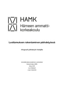 (2026)Opinnäytetyön aihe on luottamuksen rakentaminen päihdetyössä. Opinnäytetyön tavoite on lisätä tilaajan henkilökunnan tietoa luottamuksen rakentamisesta asiakkaan kanssa päihdetyössä. Opinnäytetyön tarkoitus on luoda tilaajan ... -