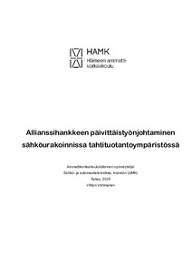 (2025)Tämä opinnäytetyö tarkastelee sähköurakoinnin päivittäisjohtamista allianssihankkeessa, jossa rakentaminen toteutettiin tahtituotannon mukaisesti. Tutkimuksen tavoitteena oli tunnistaa johtamisen keskeiset haasteet ja ... -