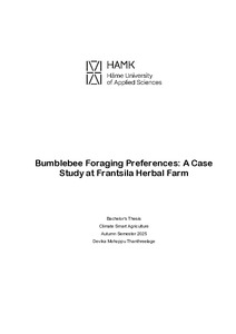 (2025)This thesis examines bumblebees’ foraging preferences at Frantsila Herbal Farm in Hämeenkyrö, Finland. This case study was conducted in an organic agricultural setting by investigating the relationship between herbal ... -