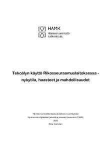 (2025)Tekoälystä on tullut viime vuosien aikana yhä merkittävämpi osa arkeamme ja työelämäämme. Kehitys on osa laajempaa digitalisaation murrosta, jonka tavoitteena on vastata työelämän nykyisiin ja tuleviin haasteisiin. Tekoälyn ...