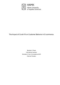 (2025)This bachelor’s thesis investigates how the COVID-19 pandemic influenced consumer behavior in the global e-commerce sector, with a particular focus on what this means for a regional retailer. The research uses a mixed-methods ... -