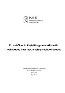 Provet Cloudin käytettävyys eläinklinikalla : vahvuudet, haasteet ja kehitysmahdollisuudet