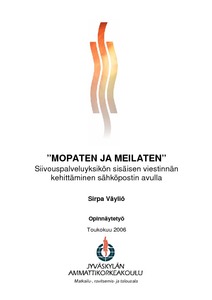 Jatkuvat toimintaympäristön muutokset edellyttävät nopeaa ja oikea-aikaista tiedon välittämistä työyhteisössä. Siivouspalveluyksikön sisäisen viestinnän keskeisenä ongelmana on ollut tiedonvälityksen hitaus ja ajanmukaisten ja vuorovaikutteisten viestintäkanavien puuttuminen. Tämä opinnäytetyö on Jyväskylän maalaiskunnan siivouspalveluyksikön sähköpostinkäyttöönottamiseen liittyvä kehittämistyö, jonka tavoitteena on parantaa siivouspalveluyksikön sisäistä viestintää. Jyväskylän maalaiskunnan uusi Internet-pohjainen sähköpostiohjelma mahdollisti sähköpostinkäytön myös siivouspalveluyksikön siivoojille. Sähköposti on tehokas viestintäväline edellyttäen, että se on kaikkien ulottuvilla ja kaikki osaavat käyttää sitä. Opinnäytetyön teoria käsittelee organisaation ja työyhteisön sisäistä viestintää, sen tehtäviä ja kanavia. Lisäksi opinnäytetyössä esitellään Jyväskylän maalaiskunnan viestintästrategia,joka tukee sähköpostin käyttöönottamista siivouspalveluissa. Opinnäytetyössä raportoidaan kehittämistyö, sen lähtökohdat ja toteuttaminen. Kehittämistyössä käytettiin määrällisiä tutkimusmenetelmän keinoja, joilla selvitettiin siivouspalveluyksikön siivoojien koulutustarpeita ja seurattiin koulutuksissa opittujen asioiden siirtovaikutuksia työhön. Kehittämistyön tavoitteet sähköpostin käyttöön ottamisessa saavutettiin. Sähköposti on kaikkien ulottuvi lla ja kaikki käyttävät sitä. Se on tarjonnut siivouspalveluyksikön työntekijöille helppokäyttöisen ja tehokkaan viestintäkanavan työviestinnän hoitamiseen. Sähköpostin käyttöä tullaan kehittämään seuraavassa uudessa kehittämishankkeessa, jonka tavoitteena on sähköisten tilauslomakkeidenkäyttöön ottaminen vuonna 2006. Continuous changes within the operational environment require fast and on-time flow of information within the work community. A central problem with the communication of the Cleaning Unit has been the slowness of the information flow and the lack of current and interactive communication channels. This thesis is a development work for the introduction of electronic mail in the Cleaning Unit of the Rural Municipality of Jyväskylä. Its aim is to improve the internal communication within the Cleaning Unit. The Rural Municipality of Jyväskylä's new, Internet based E-mail programme enabled the cleaners in the Cleaning Unit also to use E-mail. Electronic mail is an efficient form of communication; provided that it is reachable for everybody and that everybody knows how to use it. The theoretical part of the thesis is about the internal communication of the organization and the working community, as well as its tasks and channels. Furthermore, the thesis introduces the communication strategy of the Rural Municipality of Jyväskylä, which supports the introduction of electronic mail within the Cleaning Unit. Furthermore, the thesis reports on the development, its starting points and its implementing. The development work used quantitative research methods. Though which the cleaners' needs for training were studied. In addition, the transfer of training into theory was also followed. The aims of the development work concerning the introduction of the E-mail werereached. Electronic mail is reachable for everyone and everyone uses it. E-mail has proven to be easy to use and efficient for the Cleaning Unit's cleaners' professional communication. The use of electronic mail will be developed during the following new development project, The goal us which is to introducethe use of electronic order forms during the year 2006.
