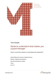 The objective of this thesis is to cover qualities and other characteristics that make managers good and efficient at the work place, to guide managers through theories and a case study in order to achieve the right level of leadership and to avoid the unprofes-sionalism.
