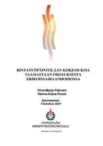 Opinnäytetyön tarkoituksena oli selvittää Keski-Suomen keskussairaalan rintasyöpäpotilaiden tyytyväisyyttä saamaansa ohjaukseen. Ehdotus tälle tutkimukselle tuli Keski-Suomen keskussairaalan osastolta, jossa rintasyöpäpotilaita hoidettiin pre- ja postoperatiivisesti. Henkilökunta toivoi osastolle kyselykaavaketta, jonka avulla parannettaisiin rintasyöpäpotilaiden ohjausta. Opinnäytetyö toteutettiin kvantitatiivisena tutkimuksena. Tutkimusaineisto kerättiin kyselylomakkeiden avulla, jotka osaston hoitajat jakoivat rintasyöpäpotilaille hoitojakson aikana. Tutkimustulokset esitettiin kuvioiden ja vapaan selittämisen avulla. Tutkimustuloksissa on esitetty myös vapaamuotoisia lauseita, joita rintasyöpäpotilaat olivat kirjoittaneet vastauslomakkeelle. Tutkimustuloksia tuli huomattavasti vähemmän kuin niitä oli alun alkaen odotettu tulevan. Tutkimustulosten perusteella voidaan todeta, että vastanneet olivat tyytyväisiäsuurimmalta osin saamansa ohjaukseen. Muutamilla ohjausalueilla esiintyi hieman tyytymättömyyttä saatuun ohjaukseen, kuten fysioterapian ja sosiaalihoitajan ohjausalueilla. Vähäisen vastausmäärän perusteella on vaikea todeta, ovatko rintasyöpäpotilaat tyytyväisiä saamaansa ohjaukseen. Kvantitatiivissa tutkimuksessa tuloksia tulisi olla kattavasti, jotta tulokset olisivat luotettavia. Tässä tutkimuksessa luotettavuus kärsi vähäisistä vastauksista johtuen. Jatkotutkimuksissa voisi selvittää tarkemmin rintasyöpäpotilaiden tyytyväisyyttä saamaansa ohjaukseen ja hoitajien motivaatioita hyvään ohjauksen antamiseen osastolla. The aim of this dissertation was to clarify the contentment about the counselling that breast cancer patients have been given in the ward. The grounds for this thesis came from the ward where the breast cancer patients are being treated. The examination material was collected with a questionnaire which was distributed to the breast cancer patients by the nurses on the ward. The examination results were presented with figures and explaining with free words. The number of examination results was much less than was expected in the first place. With these results we got from this questionnaire, we can state that the breastcancer patients were mostly satisfied with the counselling they received in the ward. With these results it is hard to say whether the patients are satisfied with the counselling due to the small number of material. Our suggestion for further studies is to study more the contentment for the counselling. We also suggest examining the motivation for agood counselling among the nurses.