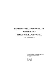 Opinnäytetyön aiheena on henkilöstötilinpäätös. Opinnäytetyön tavoitteena on luoda malli case-yrityksen ensimmäiselle henkilöstötilinpäätökselle, jota voidaan myöhemmin hyödyntää myös koko konsernissa. Tavoitteena on myös kartoittaa henkilöstötietojärjestelmien tuottaman informaation hyödyntämismahdollisuuksia sekä tuoda esiin ne seikat, jotka vielä kaipaavat kehittämistä henkilöstöinformaation tuottamiseksi. Opinnäytetyössä tarkastellaan myös pörssiyhtiöiltä vaadittavaa henkilöstöinformaation tuottamista, sillä case-yritys tulee mahdollisesti tulevaisuudessa listautumaan Helsingin pörssiin.